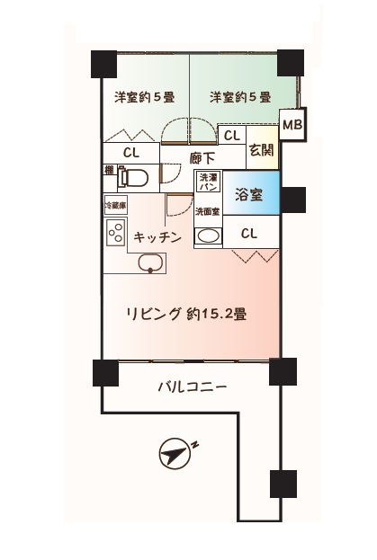 | 専有面積 | 52.8㎡ | バルコニー面積 | 13.57㎡ |