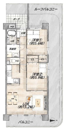 | 専有面積 | 58.63㎡ | バルコニー面積 | 28.57㎡ |